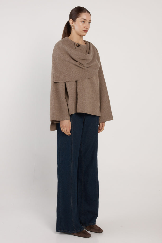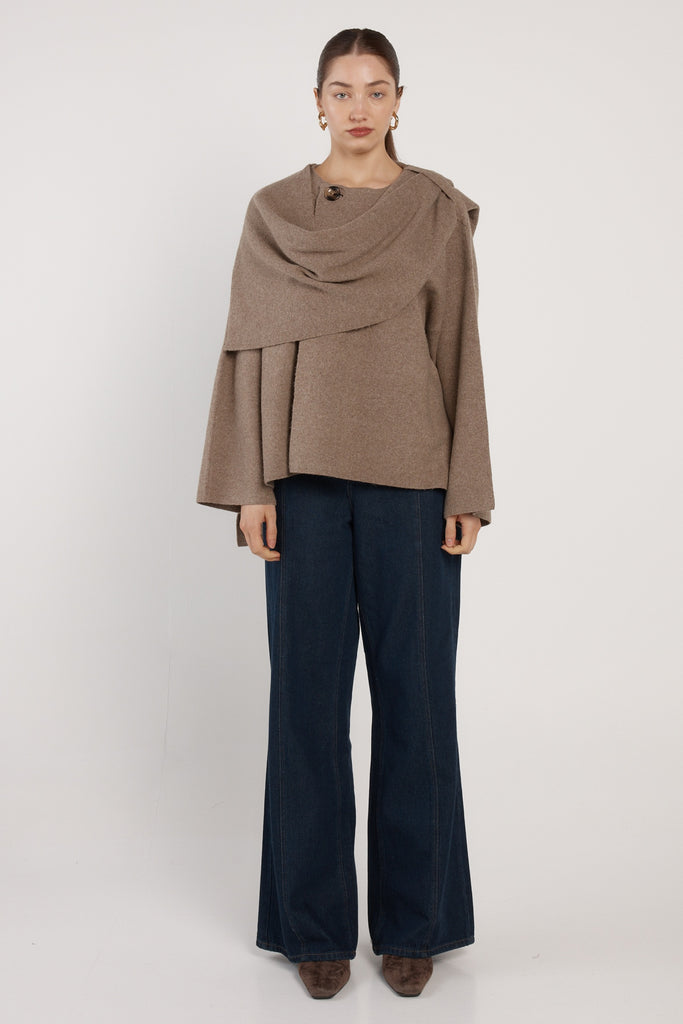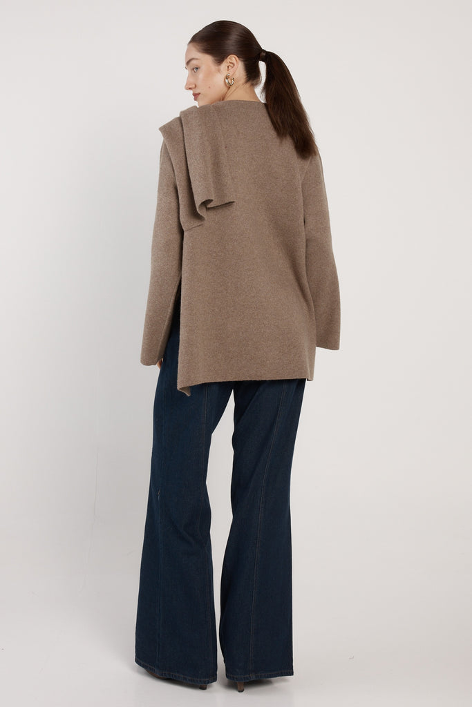 The Amaris Coatigan in Mushroom Marle is a luxe wool blend knitwear statement piece that will turn heads. Featuring a timeless coatigan design with attached shawl. One button closure, shawl detail, long bell sleeves. The best travel companion you will ever own!